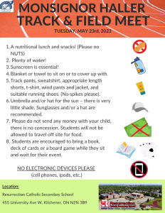 All of our circuit training efforts have come to an end! Our Haller Hawks have been working super hard to show off all of their amazing skills at our annual Track & Field Meet on Tuesday, May 23rd, 2023, @ Resurrection Catholic Secondary School.